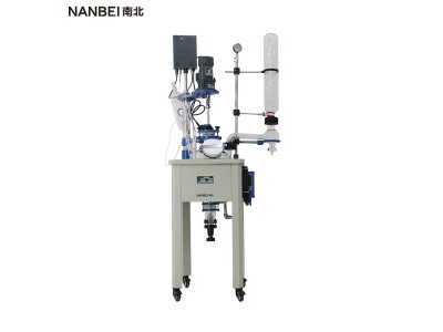 单层玻璃反应釜具有电动恒速搅拌系统、冷凝、滴加系统、加热浴锅。在搅拌物料的同时,浴锅对釜内物料进行加热,在真空条件下可以提高蒸发效率(需连接真空装置),溶媒蒸汽经玻璃冷凝盘管时冷却成液体(需连接冷却装置),可回流到釜内,也可通过回流弯头下部阀门进行回收。反应完毕,物料可从釜底的侧出料口放出。